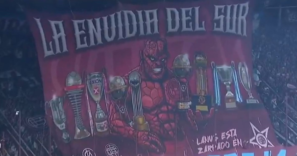 El espectacular recibimiento y la bandera que Lanús ostentó ante Banfield por sus títulos